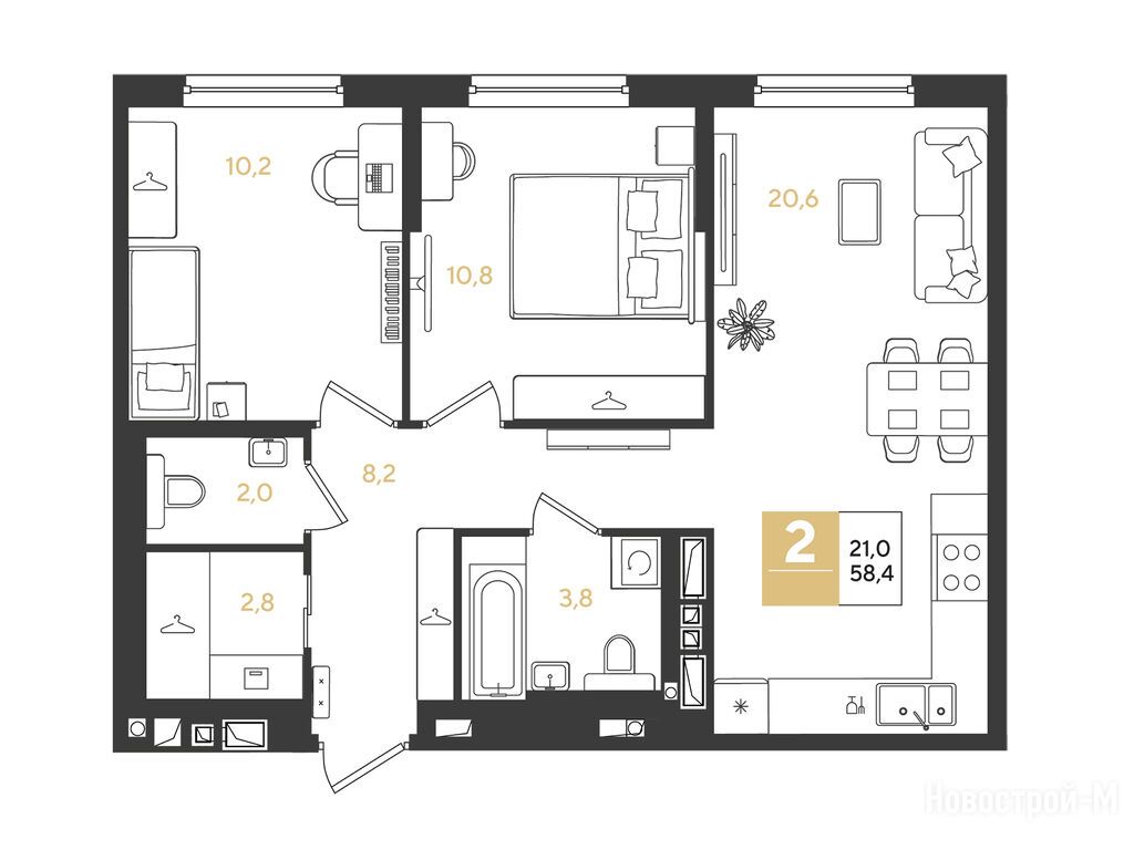 Продается двухкомнатная квартира в новостройке Квартал «Самолет 7» по адресу Краснодарский край, Краснодар, ул. Западный обход, корп. 2.2. Общая площадь квартиры - 58.4 кв. м. Тип проекта, по которому построен дом — Монолитно-кирпичный, компания-застройщик — DOGMA, ООО СЗ Догма-5. Стоимость квартиры — 11 504 800 руб. Способы оплаты можно уточнить у продавца. Срок сдачи — 2 квартал 2028. Более подробная информация по телефону.