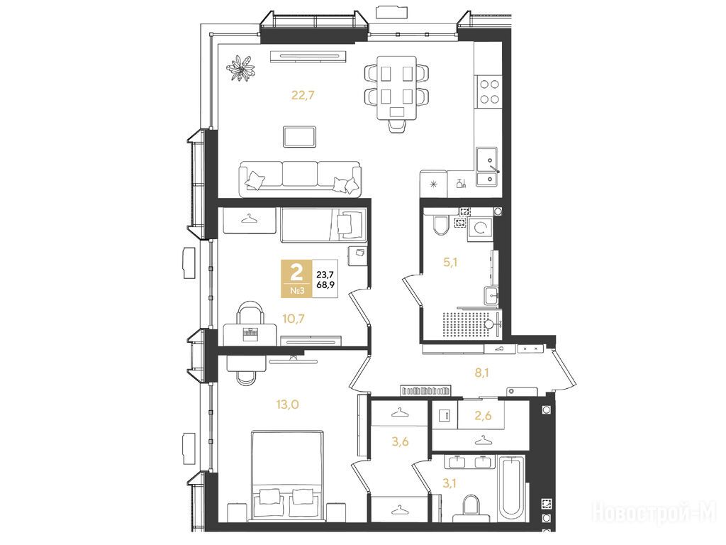 Продается двухкомнатная квартира в новостройке Квартал «Самолет 7» по адресу Краснодарский край, Краснодар, ул. Западный обход, корп. 2.2. Общая площадь квартиры - 68.9 кв. м. Тип проекта, по которому построен дом — Монолитно-кирпичный, компания-застройщик — DOGMA, ООО СЗ Догма-5. Стоимость квартиры — 12 615 590 руб. Способы оплаты можно уточнить у продавца. Срок сдачи — 2 квартал 2028. Более подробная информация по телефону.