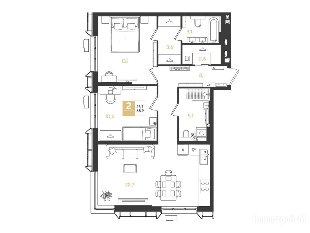 Продается двухкомнатная квартира в новостройке Квартал «Самолет 7» по адресу Краснодарский край, Краснодар, ул. Западный обход, корп. 1.1. Общая площадь квартиры - 68.9 кв. м. Тип проекта, по которому построен дом — Монолитно-кирпичный, компания-застройщик — DOGMA, ООО СЗ Догма-5. Стоимость квартиры — 12 615 590 руб. Способы оплаты можно уточнить у продавца. Срок сдачи — 2 квартал 2028. Более подробная информация по телефону.