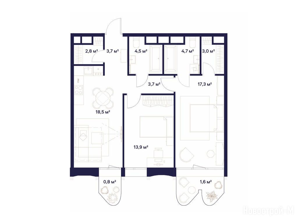 Продается двухкомнатная квартира в новостройке Квартал здоровой жизни «СОЮЗ» по адресу Москва, СВАО, Ростокино, ул. Сельскохозяйственная, вл. 26, корп. 6. Общая площадь квартиры - 74.5 кв. м. Тип проекта, по которому построен дом — Монолитно-кирпичный, компания-застройщик — ГРУППА РОДИНА, СЗ «ИСКРА». Стоимость квартиры — 46 598 600 руб. Способы оплаты можно уточнить у продавца. Срок сдачи — 1 квартал 2026. Более подробная информация по телефону.