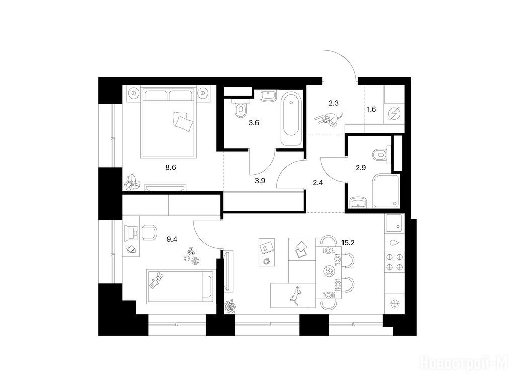 Данная квартира является лидером продаж среди двухкомнатных квартир в Нарвин по данным Росреестра