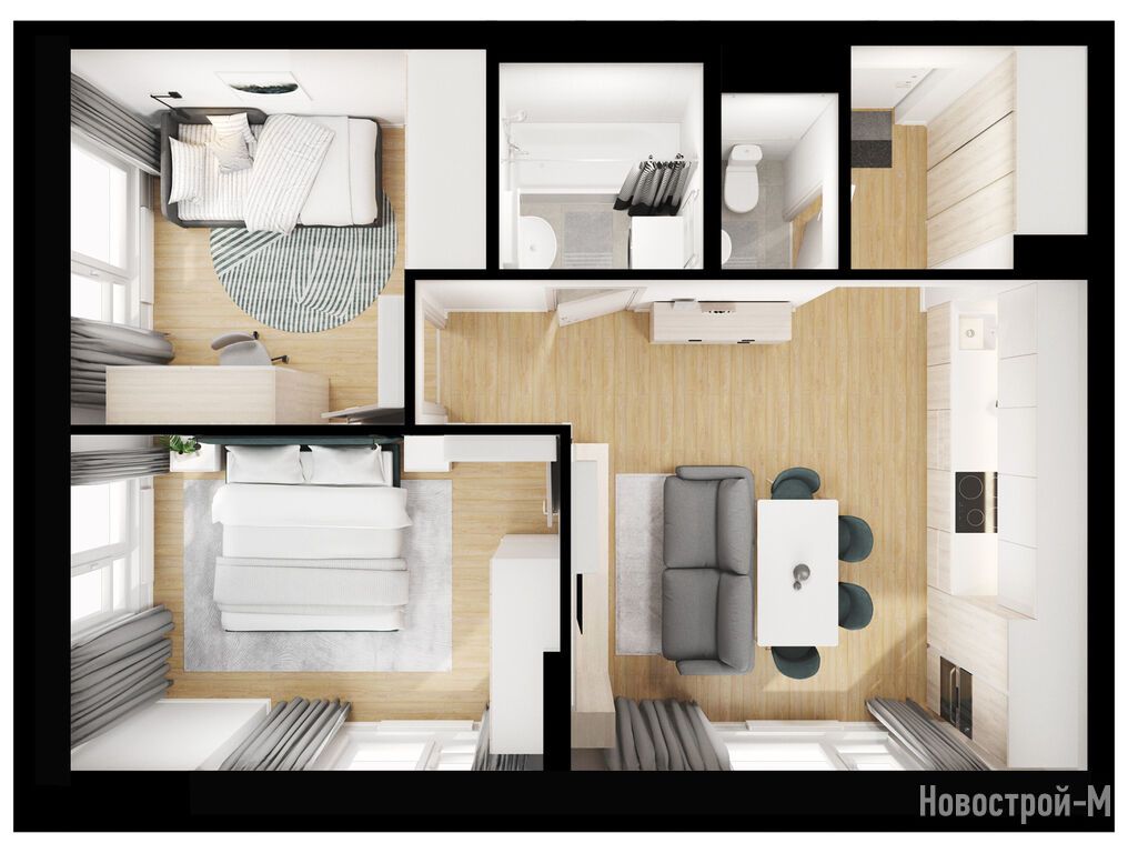 Особенно порадовало, что квартиры предлагаются с готовой отделкой от застройщика. Не нужно тратить время и силы на ремонт. Заехал и живи.