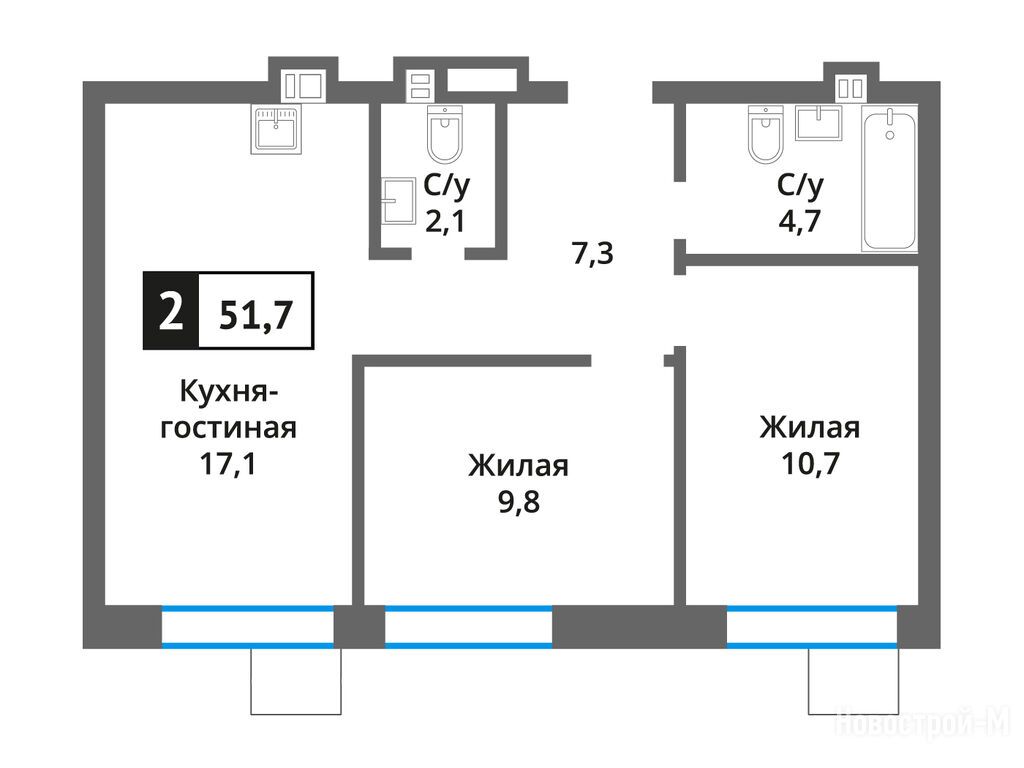 Данная квартира является лидером продаж среди двухкомнатных квартир в Никольский квартал «Отрада» по данным Росреестра