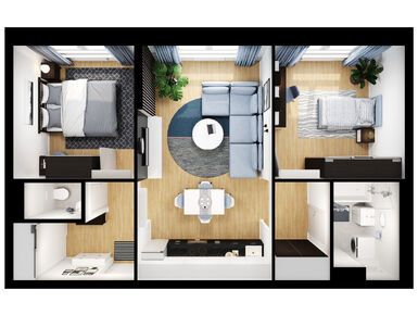 Не территории будет детский сад на 150 малышей и школа для 350 учеников. А во дворе — зелёный парк с детскими и спортивными площадками и зонами для отдыха. На первых этажах откроются магазины, кафе и другие сервисы. В общем, будет очень даже прилично