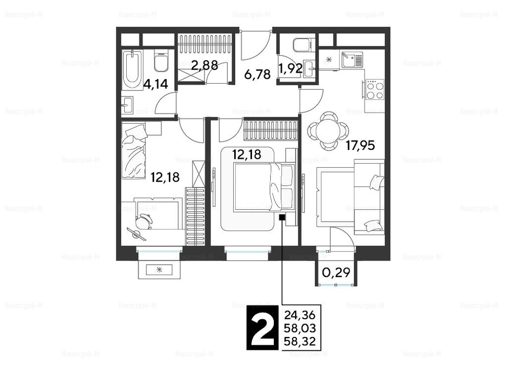 Продается двухкомнатная квартира в новостройке Жилой комплекс EVO (Эво) по адресу Московская область, Реутов городской округ, Реутов, ул. Комсомольская, корп. 1. Общая площадь квартиры - 58.32 кв. м. Тип проекта, по которому построен дом — Монолитно-кирпичный, компания-застройщик — DOGMA. Стоимость квартиры — 15 800 110 руб. Способы оплаты можно уточнить у продавца. Срок сдачи — 1 квартал 2026. Более подробная информация по телефону.