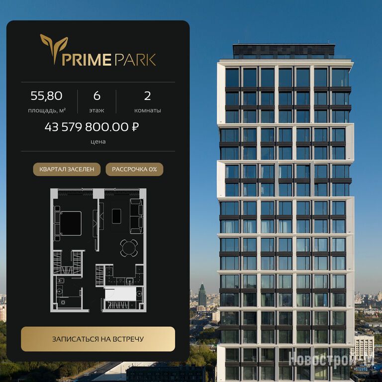 Продается двухкомнатная квартира в новостройке Жилой квартал Prime Park (Прайм Парк) по адресу Москва, САО, Хорошевский, Ленинградский пр-т, 37/8. Общая площадь квартиры - 55.8 кв. м. Тип проекта, по которому построен дом — Монолит, компания-застройщик — Optima Development (Оптима Девелопмент). Стоимость квартиры — 40 398 475 руб. Способы оплаты можно уточнить у продавца. Срок сдачи — 3 квартал 2027. Более подробная информация по телефону.