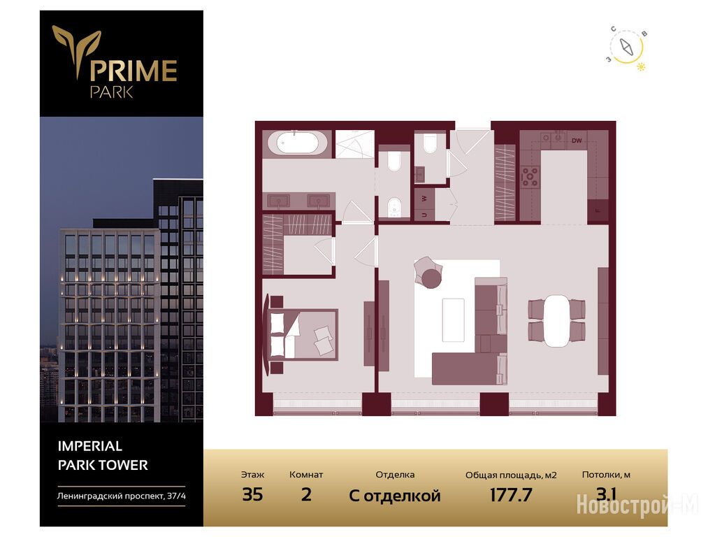 Продается двухкомнатная квартира в новостройке Жилой квартал Prime Park (Прайм Парк) по адресу Москва, САО, Хорошевский, Ленинградский пр-т, 37/4. Общая площадь квартиры - 177.7 кв. м. Тип проекта, по которому построен дом — Монолит, компания-застройщик — Optima Development. Стоимость квартиры — 234 306 873 руб. Способы оплаты можно уточнить у продавца. Более подробная информация по телефону.
