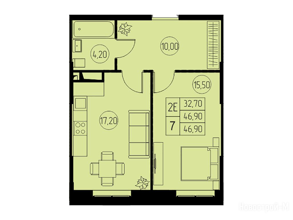 Данная квартира является лидером продаж среди двухкомнатных квартир в ЖК «31 квартал» по данным Росреестра