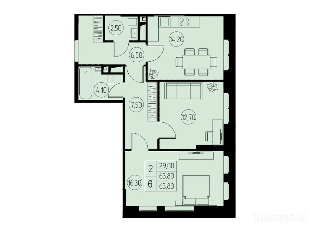 Данная квартира является лидером продаж среди двухкомнатных квартир в ЖК «31 квартал» по данным Росреестра