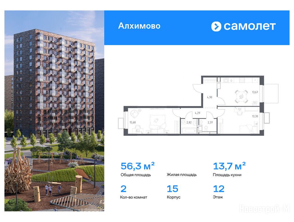 Продается двухкомнатная квартира в новостройке ЖК «Алхимово» по адресу Москва, ТиНАО, Новомосковский АО, Рязановское С/П, пос. Рязановское, вблизи д. Алхимово, ЖК «Алхимово», корп. 15. Общая площадь квартиры - 56.3 кв. м. Тип проекта, по которому построен дом — Монолитно-кирпичный, компания-застройщик — Группа «Самолет», ООО СЗ «Самолет-Алхимово». Стоимость квартиры — 15 876 600 руб. Способы оплаты можно уточнить у продавца. Более подробная информация по телефону.