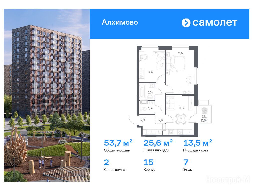 Продается двухкомнатная квартира в новостройке ЖК «Алхимово» по адресу Москва, ТиНАО, Новомосковский АО, Рязановское С/П, пос. Рязановское, вблизи д. Алхимово, ЖК «Алхимово», корп. 15. Общая площадь квартиры - 53.7 кв. м. Тип проекта, по которому построен дом — Монолитно-кирпичный, компания-застройщик — Группа «Самолет», ООО СЗ «Самолет-Алхимово». Стоимость квартиры — 17 450 350 руб. Способы оплаты можно уточнить у продавца. Более подробная информация по телефону.
