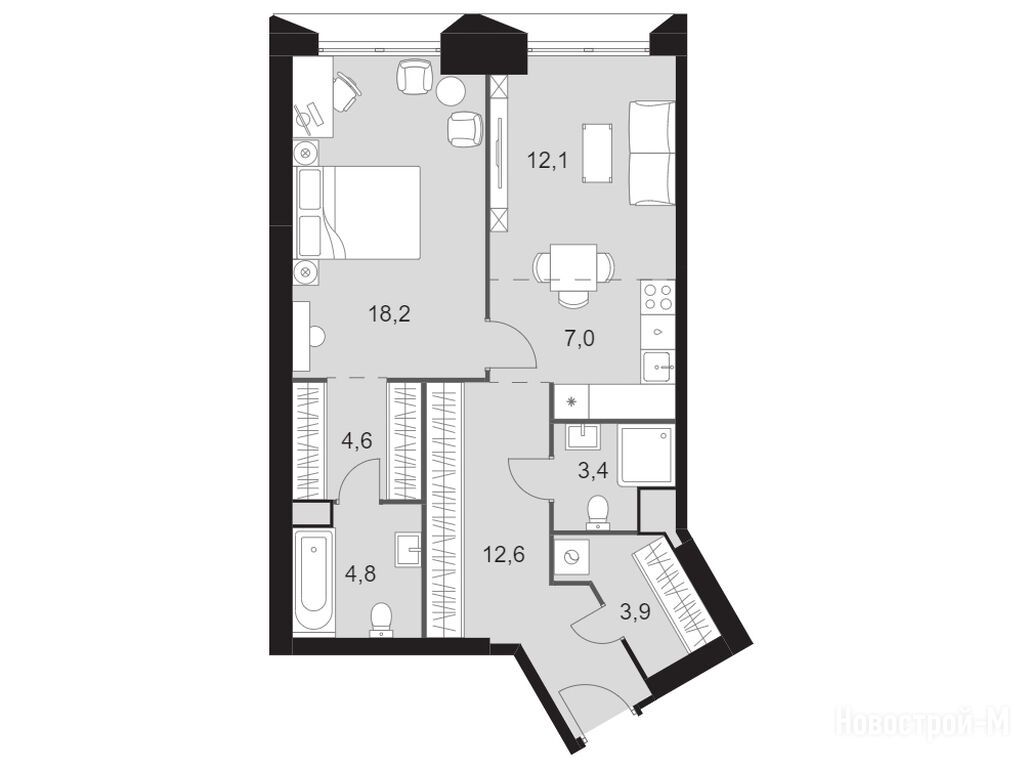 И мы присматриваем квартиру в этом ЖК. Понравились планировки. Удобно, что из хозяйской спальни будет выход в ванную, гардеробную и на балкон.