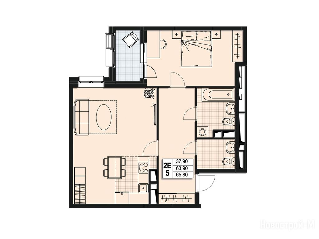 2-комн. квартира, 63.50 м2, 5 этаж