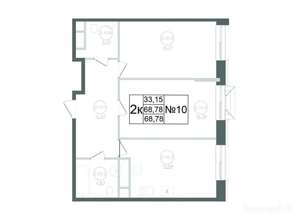 2-комн. квартира, 68.78 м2, 13 этаж