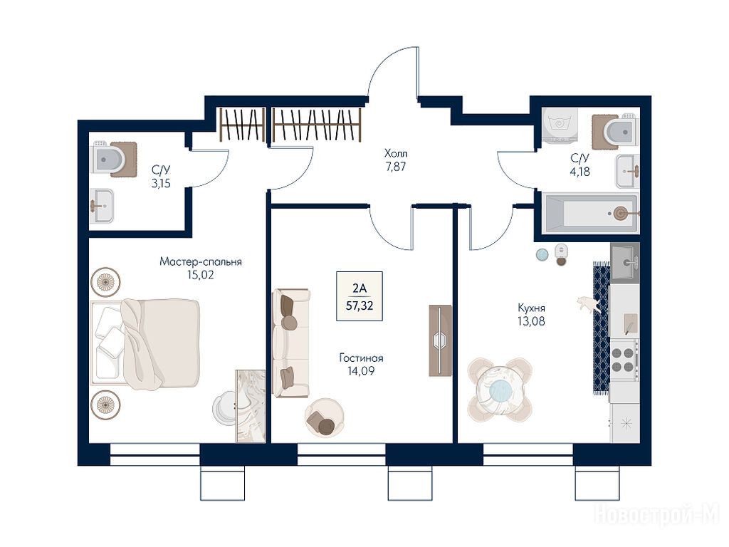 Продается двухкомнатная квартира в новостройке ЖК «Бархат» по адресу Московская область, Мытищи городской округ, Мытищи, на пересечении ул. Колпакова и Новомытищинского проспекта, корп. 4. Общая площадь квартиры - 57.32 кв. м. Тип проекта, по которому построен дом — Монолитно-кирпичный, компания-застройщик — ООО СЗ «Глобалмытищи». Стоимость квартиры — 19 940 040 руб. Способы оплаты можно уточнить у продавца. Срок сдачи — 3 квартал 2028. Более подробная информация по телефону.