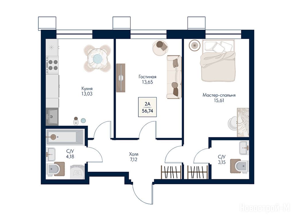Данная квартира является лидером продаж среди двухкомнатных квартир в ЖК «Бархат» по данным Росреестра