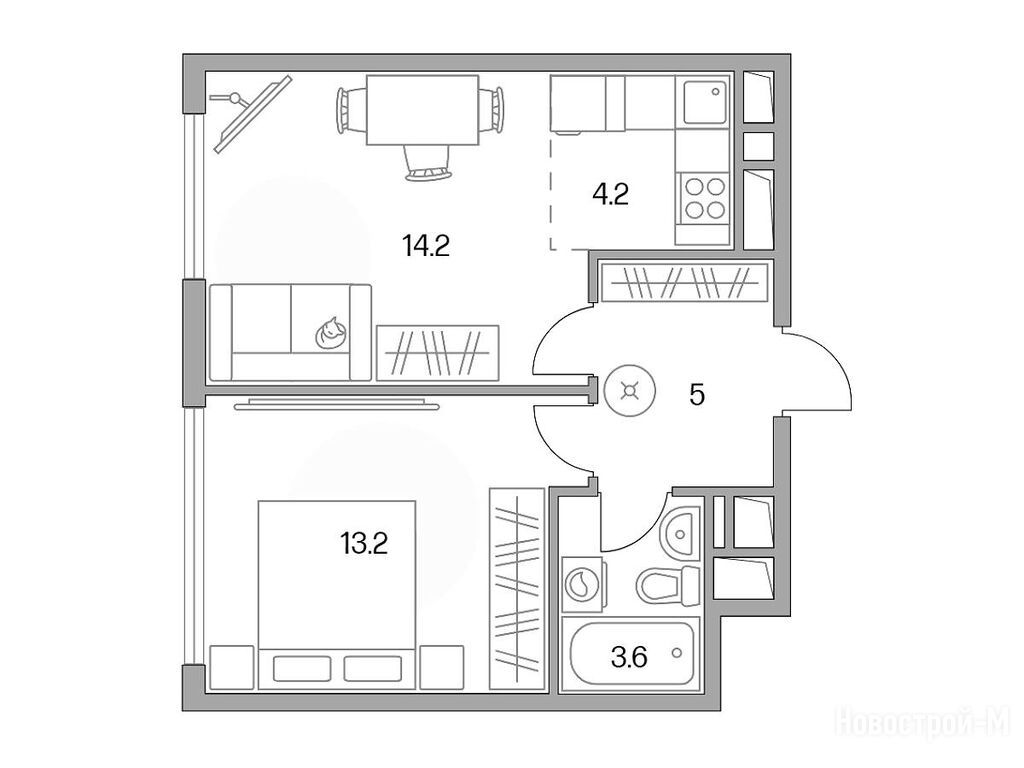 Данная квартира является лидером продаж среди двухкомнатных квартир в ЖК «Бригантина» по данным Росреестра