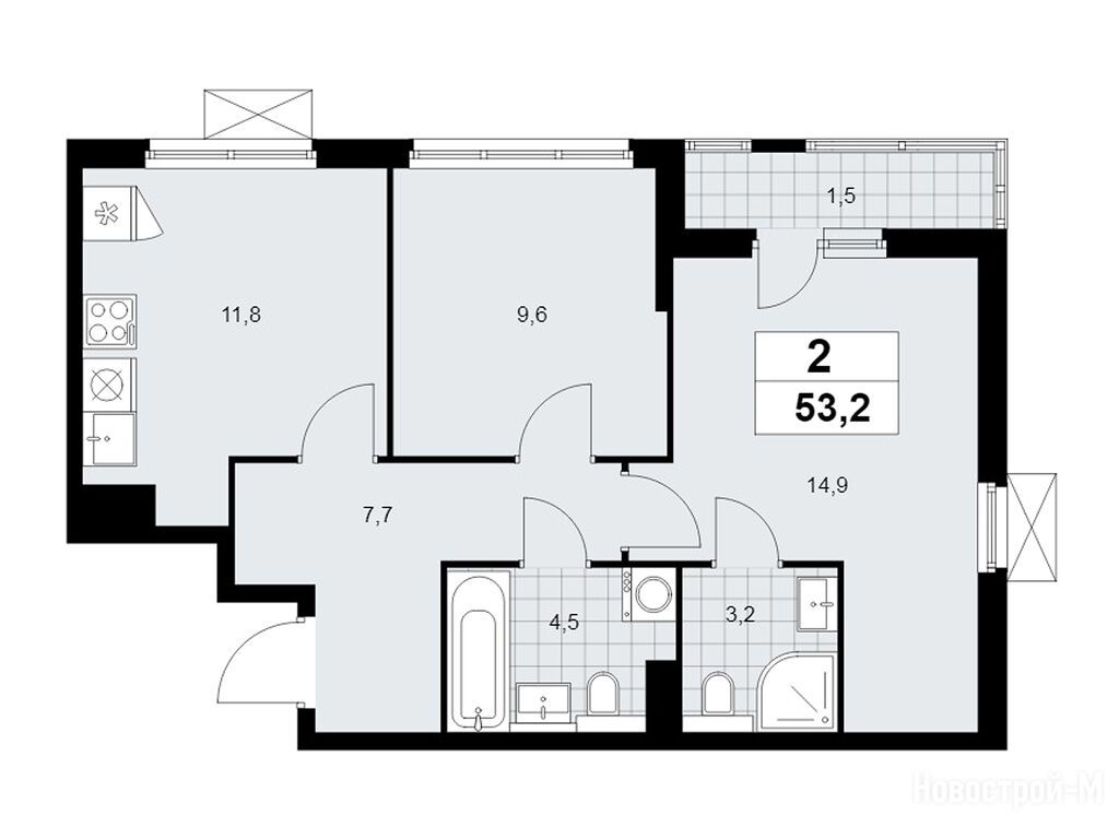 Продается двухкомнатная квартира в новостройке ЖК «Бунинские кварталы» по адресу Москва, ТиНАО, Новомосковский АО, Сосенское С/П, жилой комплекс Бунинские Кварталы, корп. 9.1. Общая площадь квартиры - 53.2 кв. м. Тип проекта, по которому построен дом — Монолит, компания-застройщик — ООО «А101». Стоимость квартиры — 18 970 056 руб. Способы оплаты можно уточнить у продавца. Срок сдачи — 2 квартал 2026. Более подробная информация по телефону.