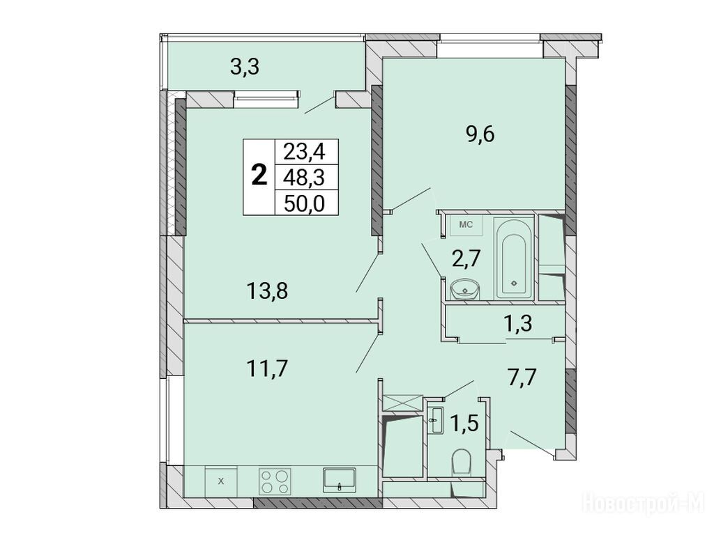 Продается двухкомнатная квартира в новостройке ЖК «Центр-2» по адресу Московская область, Железнодорожный городской округ, Железнодорожный, Поликахина, 2. Общая площадь квартиры - 49.8 кв. м. Тип проекта, по которому построен дом — Монолитно-панельный, компания-застройщик — ЖСК Центр-2, Конструктор, ДСК-1, Специализированный застройщик «Лидер Подмосковья», Стройинвест. Стоимость квартиры — 9 484 659 руб. Способы оплаты можно уточнить у продавца. Более подробная информация по телефону.