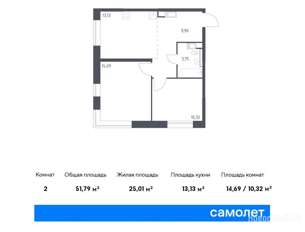 Продается двухкомнатная квартира в новостройке ЖК «Цветочные поляны» по адресу Москва, ТиНАО, Новомосковский АО, Филимонковское С/П, Квартал № 165, корп. 12. Общая площадь квартиры - 51.79 кв. м. Тип проекта, по которому построен дом — Монолитно-кирпичный, компания-застройщик — Группа «Самолет», ООО СЗ «МИЦ-6». Стоимость квартиры — 12 585 106 руб. Способы оплаты можно уточнить у продавца. Срок сдачи — 2 квартал 2026. Более подробная информация по телефону.