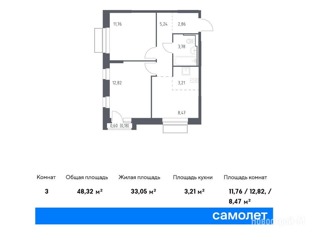 Продается двухкомнатная квартира в новостройке ЖК «Долина Яузы» по адресу Московская область, Мытищи городской округ, Мытищи, мкр.20, ул. Трудовая корп. 3. Общая площадь квартиры - 48.32 кв. м. Тип проекта, по которому построен дом — Монолитно-кирпичный, компания-застройщик — ООО СЗ «Реновация-Мытищи», Группа «Самолет». Стоимость квартиры — 17 091 307 руб. Способы оплаты можно уточнить у продавца. Срок сдачи — 1 квартал 2026. Более подробная информация по телефону.