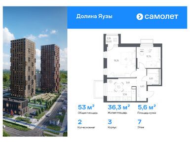 Продается двухкомнатная квартира в новостройке ЖК «Долина Яузы» по адресу Московская область, Мытищи городской округ, Мытищи, мкр.20, ул. Трудовая корп. 3. Общая площадь квартиры - 52.83 кв. м. Тип проекта, по которому построен дом — Монолитно-кирпичный, компания-застройщик — ООО СЗ «Реновация-Мытищи», Группа «Самолет». Стоимость квартиры — 16 831 004 руб. Способы оплаты можно уточнить у продавца. Срок сдачи — 1 квартал 2026. Более подробная информация по телефону.