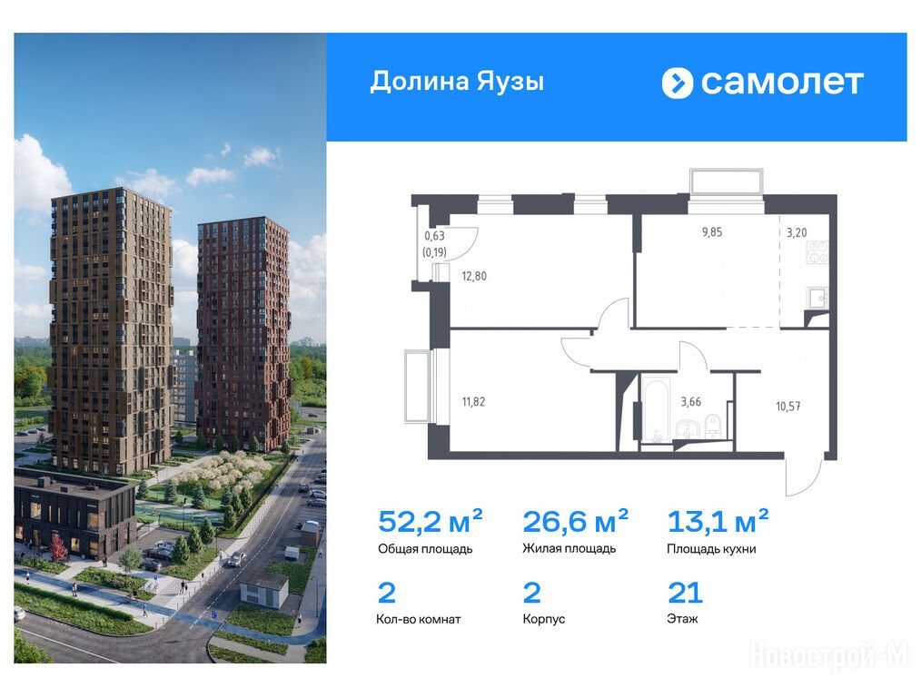 Продается двухкомнатная квартира в новостройке ЖК «Долина Яузы» по адресу Московская область, Мытищи городской округ, Мытищи, мкр.20, ул. Трудовая корп. 2. Общая площадь квартиры - 52.2 кв. м. Тип проекта, по которому построен дом — Монолитно-кирпичный, компания-застройщик — ООО СЗ «Реновация-Мытищи», Группа «Самолет». Стоимость квартиры — 17 033 336 руб. Способы оплаты можно уточнить у продавца. Срок сдачи — 4 квартал 2025. Более подробная информация по телефону.