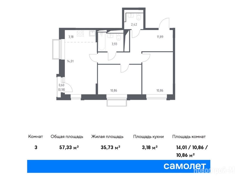 Продается двухкомнатная квартира в новостройке ЖК «Долина Яузы» по адресу Московская область, Мытищи городской округ, Мытищи, мкр.20, ул. Трудовая корп. 1. Общая площадь квартиры - 57.33 кв. м. Тип проекта, по которому построен дом — Монолитно-кирпичный, компания-застройщик — ООО СЗ «Реновация-Мытищи», Группа «Самолет». Стоимость квартиры — 21 585 546 руб. Способы оплаты можно уточнить у продавца. Срок сдачи — 4 квартал 2025. Более подробная информация по телефону.