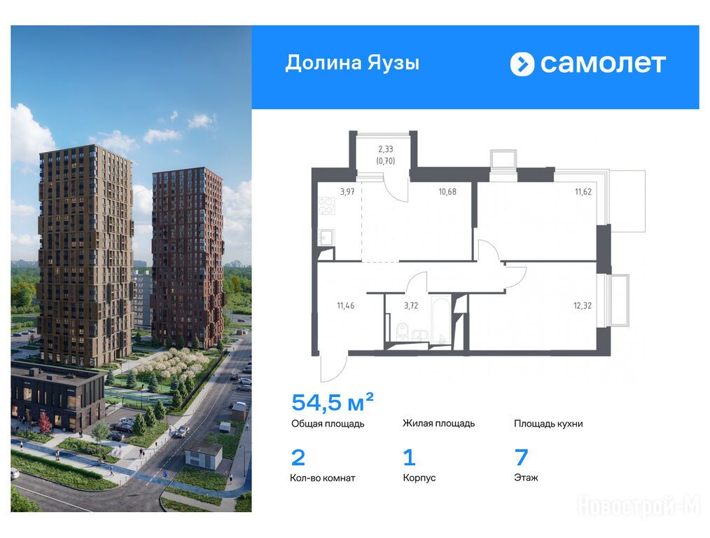 Продается двухкомнатная квартира в новостройке ЖК «Долина Яузы» по адресу Московская область, Мытищи городской округ, Мытищи, мкр.20, ул. Трудовая корп. 1. Общая площадь квартиры - 54.5 кв. м. Тип проекта, по которому построен дом — Монолитно-кирпичный, компания-застройщик — ООО СЗ «Реновация-Мытищи», Группа «Самолет». Стоимость квартиры — 19 523 426 руб. Способы оплаты можно уточнить у продавца. Более подробная информация по телефону.