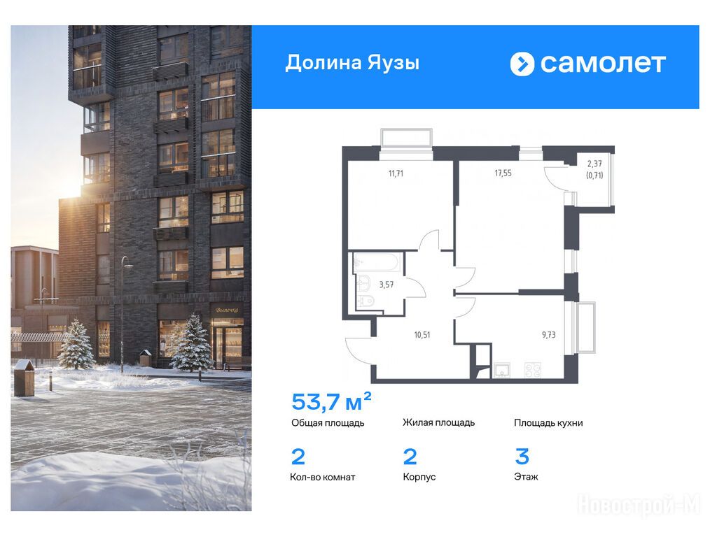 Продается двухкомнатная квартира в новостройке ЖК «Долина Яузы» по адресу Московская область, Мытищи городской округ, Мытищи, мкр.20, ул. Трудовая корп. 2. Общая площадь квартиры - 53.7 кв. м. Тип проекта, по которому построен дом — Монолитно-кирпичный, компания-застройщик — ООО СЗ «Реновация-Мытищи», Группа «Самолет». Стоимость квартиры — 17 610 571 руб. Способы оплаты можно уточнить у продавца. Более подробная информация по телефону.