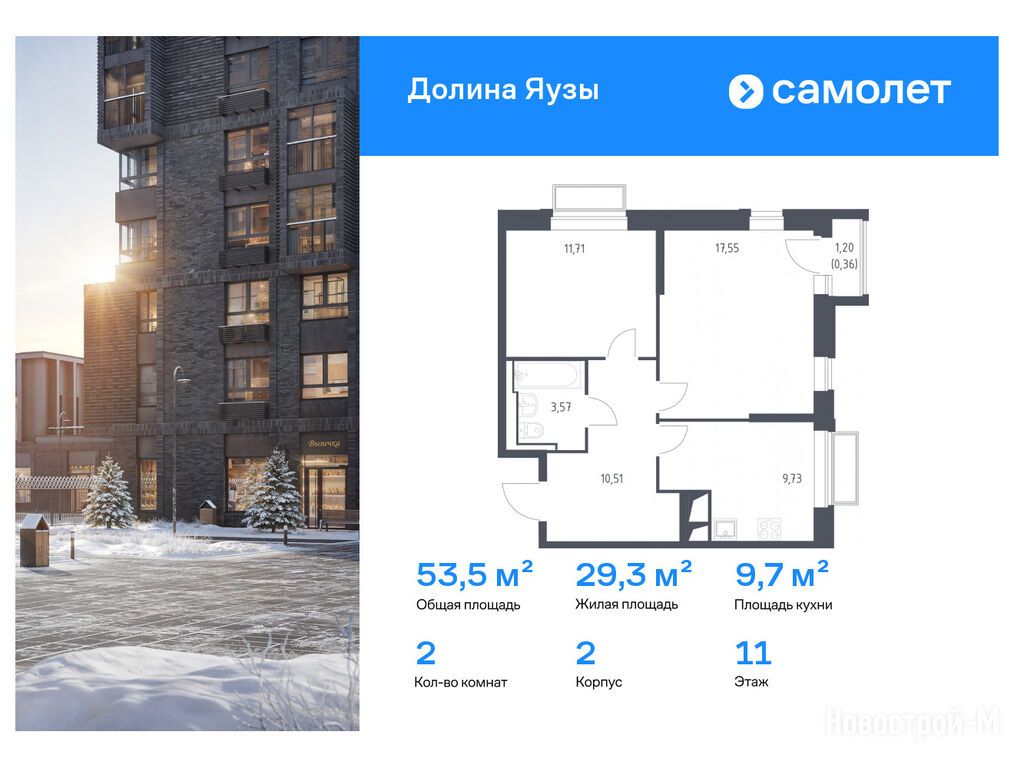 Продается двухкомнатная квартира в новостройке ЖК «Долина Яузы» по адресу Московская область, Мытищи городской округ, Мытищи, мкр.20, ул. Трудовая корп. 2. Общая площадь квартиры - 53.5 кв. м. Тип проекта, по которому построен дом — Монолитно-кирпичный, компания-застройщик — ООО СЗ «Реновация-Мытищи», Группа «Самолет». Стоимость квартиры — 19 559 600 руб. Способы оплаты можно уточнить у продавца. Более подробная информация по телефону.