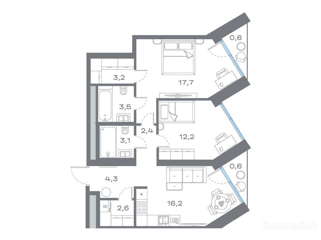 Дом с интересной архитектурой, в каждой квартире есть балкон, а в некоторых квартирах даже не один. Виды шикарные будут даже с невысоких этажей, потому что по факту этажи будут выше расположены, т.к. в лобби потолки 8 метров. Я после консультации с агентом прям впечатлился домом.