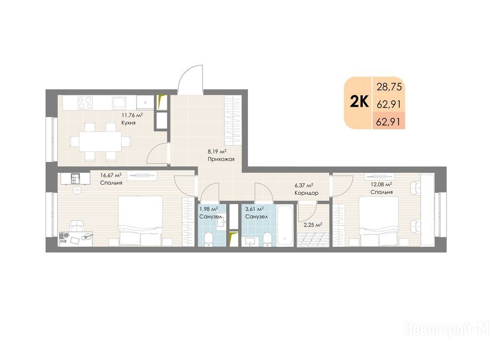 Продается двухкомнатная квартира в новостройке ЖК «Дюна» по адресу Московская область, Котельники городской округ, Котельники, шоссе Новорязанское, д. 6. Общая площадь квартиры - 62.91 кв. м. Тип проекта, по которому построен дом — Монолитно-кирпичный, компания-застройщик — Trend Group (Тренд Групп). Стоимость квартиры — 18 403 261 руб. Способы оплаты можно уточнить у продавца. Срок сдачи — 3 квартал 2027. Более подробная информация по телефону.