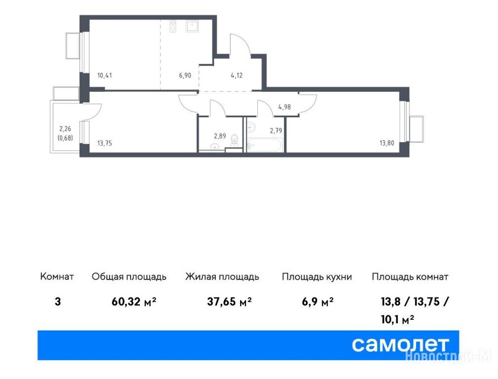Продается двухкомнатная квартира в новостройке ЖК «Егорово Парк» по адресу Московская область, Люберцы городской округ, Егорово пос., пос. Жилино-1, корп. 3.2. Общая площадь квартиры - 60.32 кв. м. Тип проекта, по которому построен дом — Монолитно-кирпичный, компания-застройщик — ООО СЗ «Самолет-Томилино», Группа «Самолет». Стоимость квартиры — 13 786 321 руб. Способы оплаты можно уточнить у продавца. Срок сдачи — 2 квартал 2026. Более подробная информация по телефону.