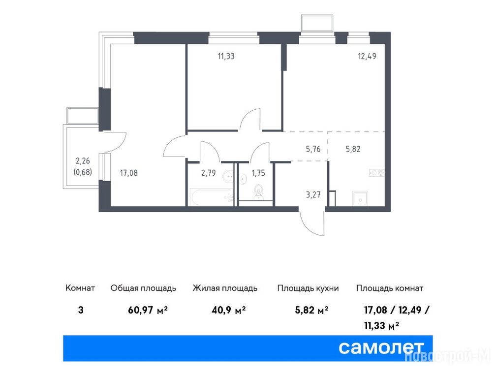 Продается двухкомнатная квартира в новостройке ЖК «Егорово Парк» по адресу Московская область, Люберцы городской округ, Егорово пос., пос. Жилино-1, корп. 3.3. Общая площадь квартиры - 60.97 кв. м. Тип проекта, по которому построен дом — Монолитно-кирпичный, компания-застройщик — ООО СЗ «Самолет-Томилино», Группа «Самолет». Стоимость квартиры — 15 247 695 руб. Способы оплаты можно уточнить у продавца. Срок сдачи — 2 квартал 2026. Более подробная информация по телефону.