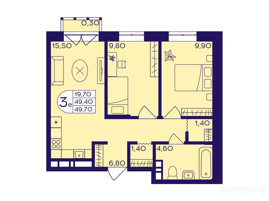 Данная квартира является лидером продаж среди двухкомнатных квартир в ЖК «Героев» по данным Росреестра