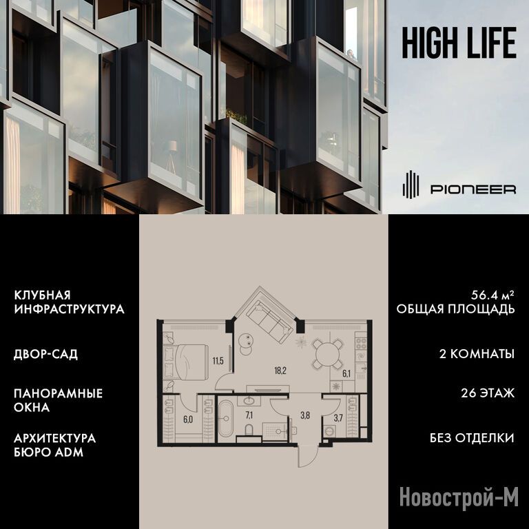 Продается двухкомнатная квартира в новостройке ЖК High Life (Хай Лайф) по адресу Москва, ЮАО, Даниловский, ул. Летниковская, д.11/10с22. Общая площадь квартиры - 56.4 кв. м. Тип проекта, по которому построен дом — Монолит, компания-застройщик — ГК Пионер. Стоимость квартиры — 54 595 200 руб. Способы оплаты можно уточнить у продавца. Срок сдачи — 4 квартал 2027. Более подробная информация по телефону.
