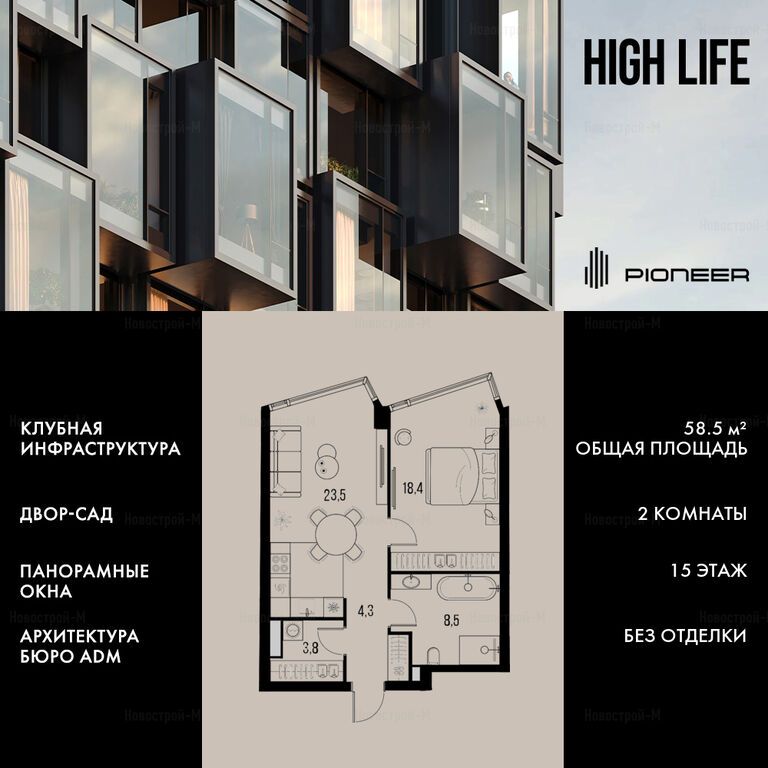 Продается двухкомнатная квартира в новостройке ЖК High Life (Хай Лайф) по адресу Москва, ЮАО, Даниловский, ул. Летниковская, д.11/10с22. Общая площадь квартиры - 58.5 кв. м. Тип проекта, по которому построен дом — Монолит, компания-застройщик — ГК Пионер. Стоимость квартиры — 48 560 850 руб. Способы оплаты можно уточнить у продавца. Срок сдачи — 4 квартал 2027. Более подробная информация по телефону.