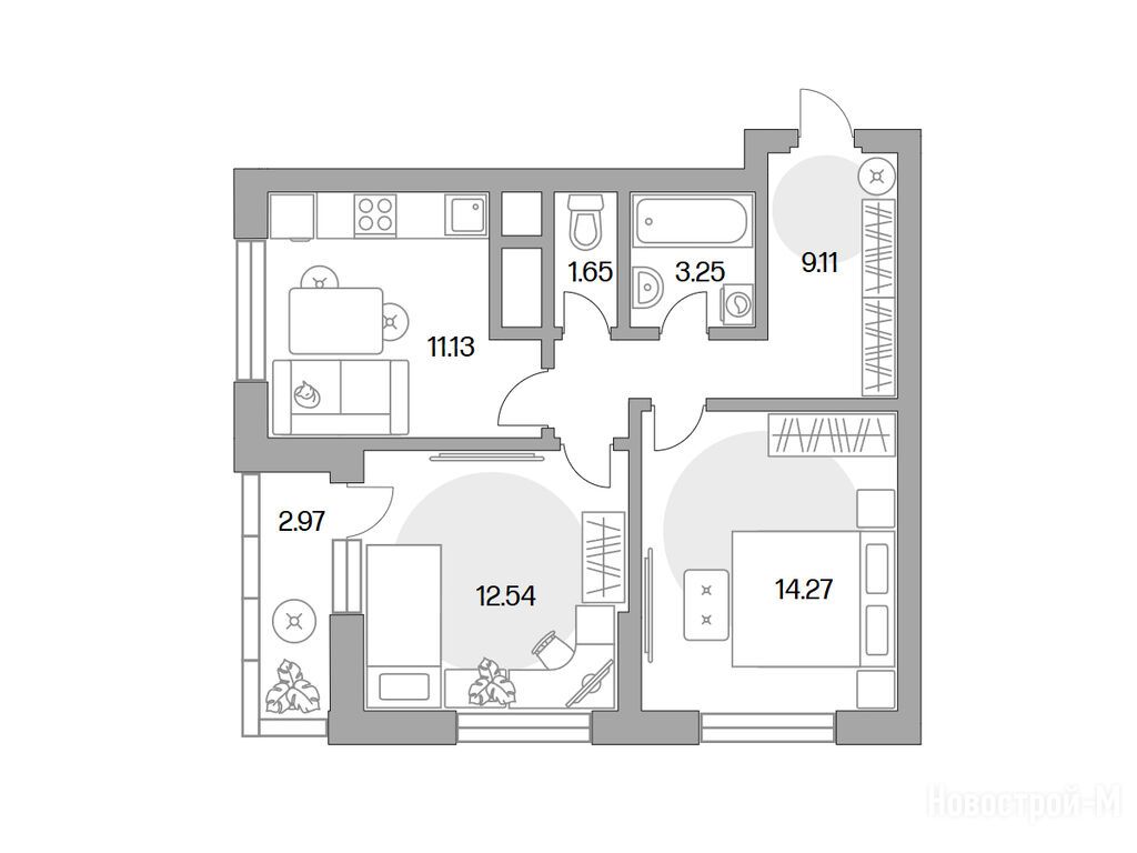 Данная квартира является лидером продаж среди двухкомнатных квартир в ЖК «Ильинойс» по данным Росреестра