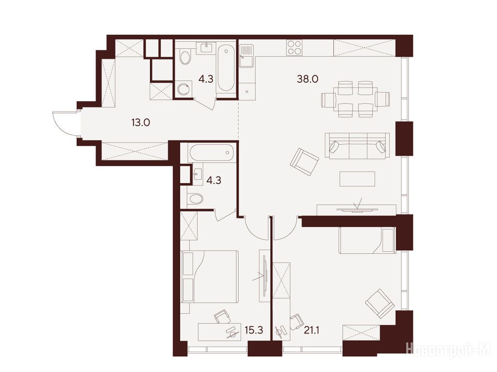 Продается двухкомнатная квартира в новостройке ЖК Indy Towers (Инди Тауэрс) по адресу Москва, САО, Хорошевский, ул. Куусинена, вл.21, 21А. Общая площадь квартиры - 96 кв. м. Тип проекта, по которому построен дом — Монолитно-кирпичный, компания-застройщик — Группа «Аквилон». Стоимость квартиры — 51 111 300 руб. Способы оплаты можно уточнить у продавца. Срок сдачи — 3 квартал 2029. Более подробная информация по телефону.