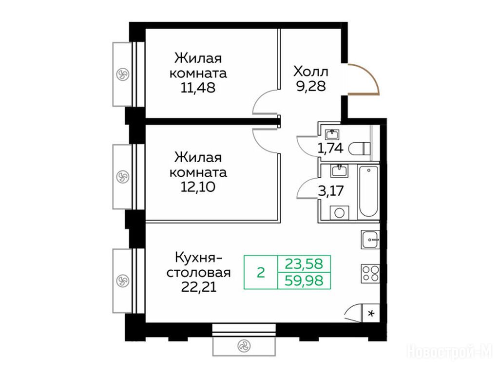 Продается двухкомнатная квартира в новостройке ЖК «КИТ» по адресу Московская область, Мытищи городской округ, Мытищи, Новомытищинский пр-т, д. 2Б, корп. 1. Общая площадь квартиры - 60 кв. м. Тип проекта, по которому построен дом — Монолитно-кирпичный, компания-застройщик — СЗ Инвест Групп, СЗ ЖК «КИТ». Стоимость квартиры — 18 651 300 руб. Способы оплаты можно уточнить у продавца. Более подробная информация по телефону.