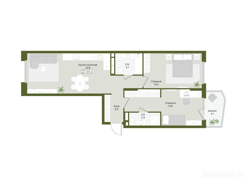 Понравилась идея «Коллекции»: малоэтажность, более спокойная плотность, не ощущается «человейник». В описаниях и отзывах часто отмечают редкие планировки — террасы, гардеробные, мастер-спальни, есть варианты с отдельным входом. Для меня это плюс, потому что хочется не просто метры, а удобную логику квартиры. Минус один — ждать сдачу и цены не самые мягкие.