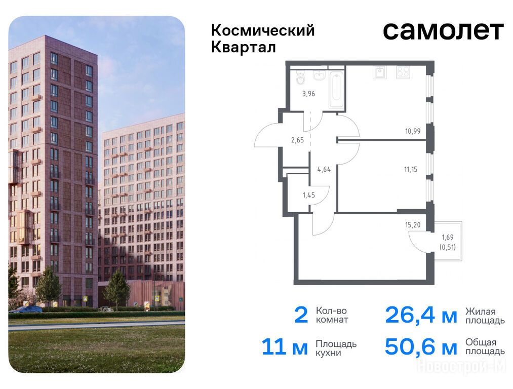Продается двухкомнатная квартира в новостройке ЖК «Космический квартал» по адресу Московская область, Королев городской округ, Королев, ул. Тихонравова, ул. Лесная, ул. Советская, д. 1. Общая площадь квартиры - 50.55 кв. м. Тип проекта, по которому построен дом — Монолит,Железобетон, компания-застройщик — Группа «Самолет», ООО СЗ Самолет-Королев. Стоимость квартиры — 10 377 376 руб. Способы оплаты можно уточнить у продавца. Срок сдачи — 4 квартал 2026. Более подробная информация по телефону.