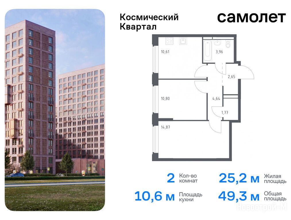 Продается двухкомнатная квартира в новостройке ЖК «Космический квартал» по адресу Московская область, Королев городской округ, Королев, ул. Тихонравова, ул. Лесная, ул. Советская, д. 1. Общая площадь квартиры - 49.3 кв. м. Тип проекта, по которому построен дом — Монолит,Железобетон, компания-застройщик — Группа «Самолет», ООО СЗ Самолет-Королев. Стоимость квартиры — 11 256 777 руб. Способы оплаты можно уточнить у продавца. Срок сдачи — 4 квартал 2026. Более подробная информация по телефону.