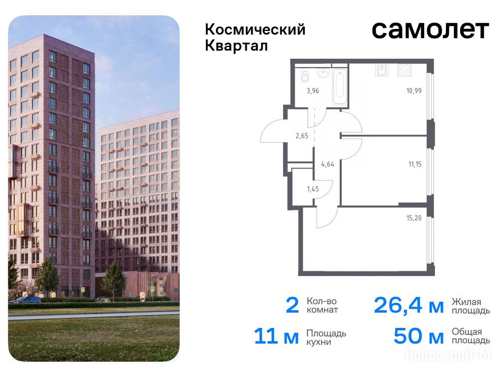 Продается двухкомнатная квартира в новостройке ЖК «Космический квартал» по адресу Московская область, Королев городской округ, Королев, ул. Тихонравова, ул. Лесная, ул. Советская, д. 1. Общая площадь квартиры - 50.04 кв. м. Тип проекта, по которому построен дом — Монолит,Железобетон, компания-застройщик — Группа «Самолет», ООО СЗ Самолет-Королев. Стоимость квартиры — 9 954 908 руб. Способы оплаты можно уточнить у продавца. Срок сдачи — 4 квартал 2026. Более подробная информация по телефону.