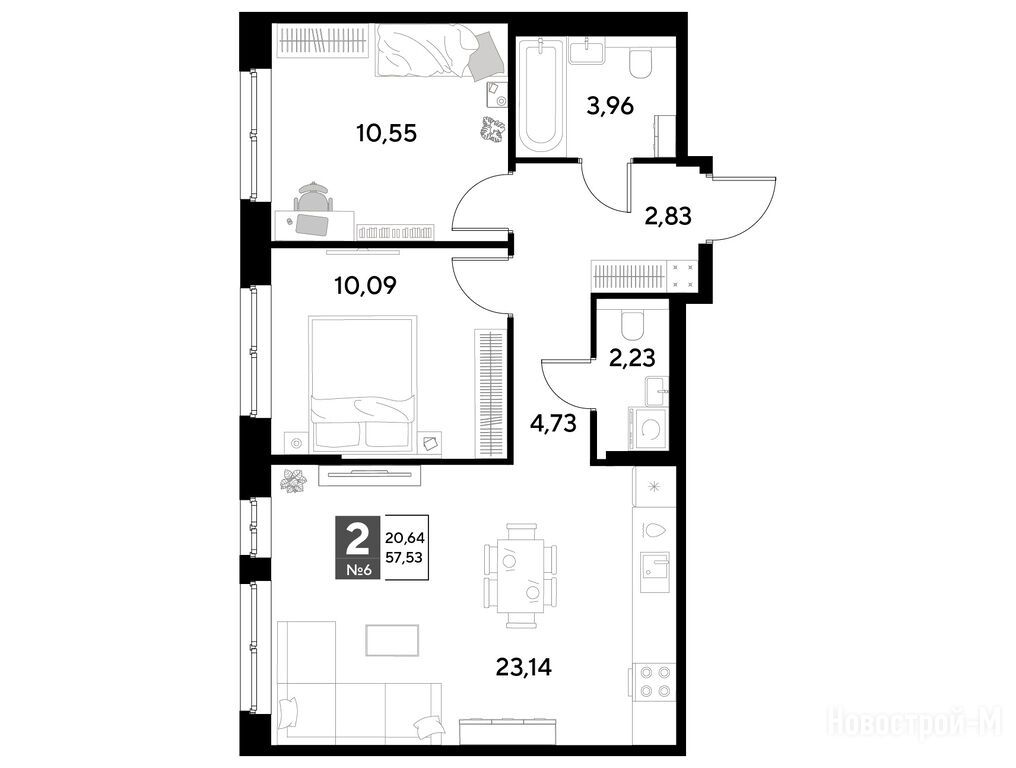 Продается двухкомнатная квартира в новостройке ЖК «Космопарк» по адресу Калужская область, Калуга, ул. Болдина, д. 22. Общая площадь квартиры - 57.53 кв. м. Тип проекта, по которому построен дом — Монолитно-кирпичный, компания-застройщик — DOGMA, ООО СЗ Д-Финанс. Стоимость квартиры — 9 877 901 руб. Способы оплаты можно уточнить у продавца. Срок сдачи — 1 квартал 2027. Более подробная информация по телефону.
