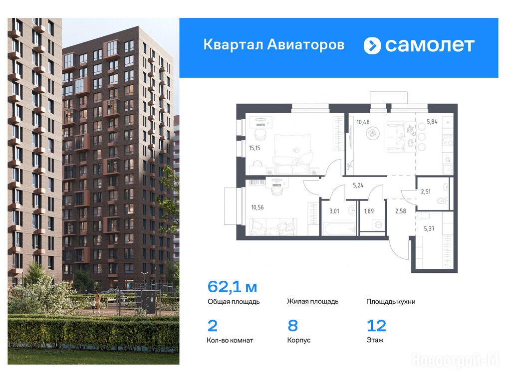 Продается двухкомнатная квартира в новостройке ЖК «Квартал Авиаторов» по адресу Московская область, Балашиха городской округ, Балашиха, ул. Кожедуба, корп. 8. Общая площадь квартиры - 62.1 кв. м. Тип проекта, по которому построен дом — Монолитно-кирпичный, компания-застройщик — ООО СЗ «Реновация-Балашиха», Группа «Самолет». Стоимость квартиры — 16 197 165 руб. Способы оплаты можно уточнить у продавца. Более подробная информация по телефону.
