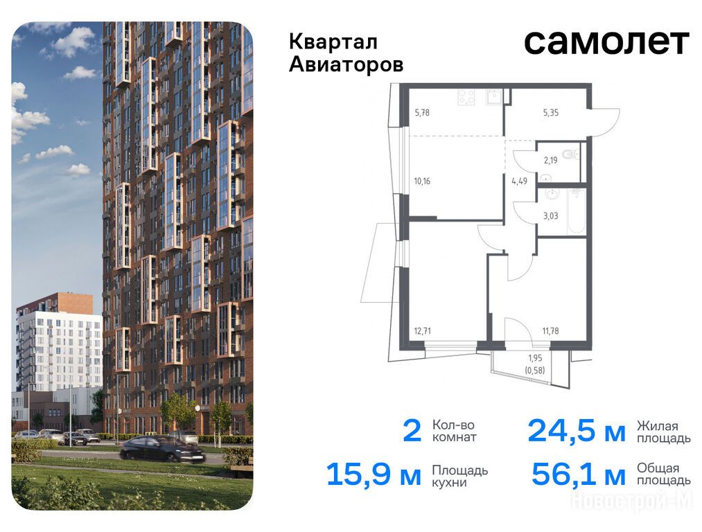Продается двухкомнатная квартира в новостройке ЖК «Квартал Авиаторов» по адресу Московская область, Балашиха городской округ, Балашиха, ул. Кожедуба, корп. 4. Общая площадь квартиры - 56.07 кв. м. Тип проекта, по которому построен дом — Монолитно-кирпичный, компания-застройщик — ООО СЗ «Реновация-Балашиха», Группа «Самолет». Стоимость квартиры — 9 617 967 руб. Способы оплаты можно уточнить у продавца. Срок сдачи — 4 квартал 2026. Более подробная информация по телефону.