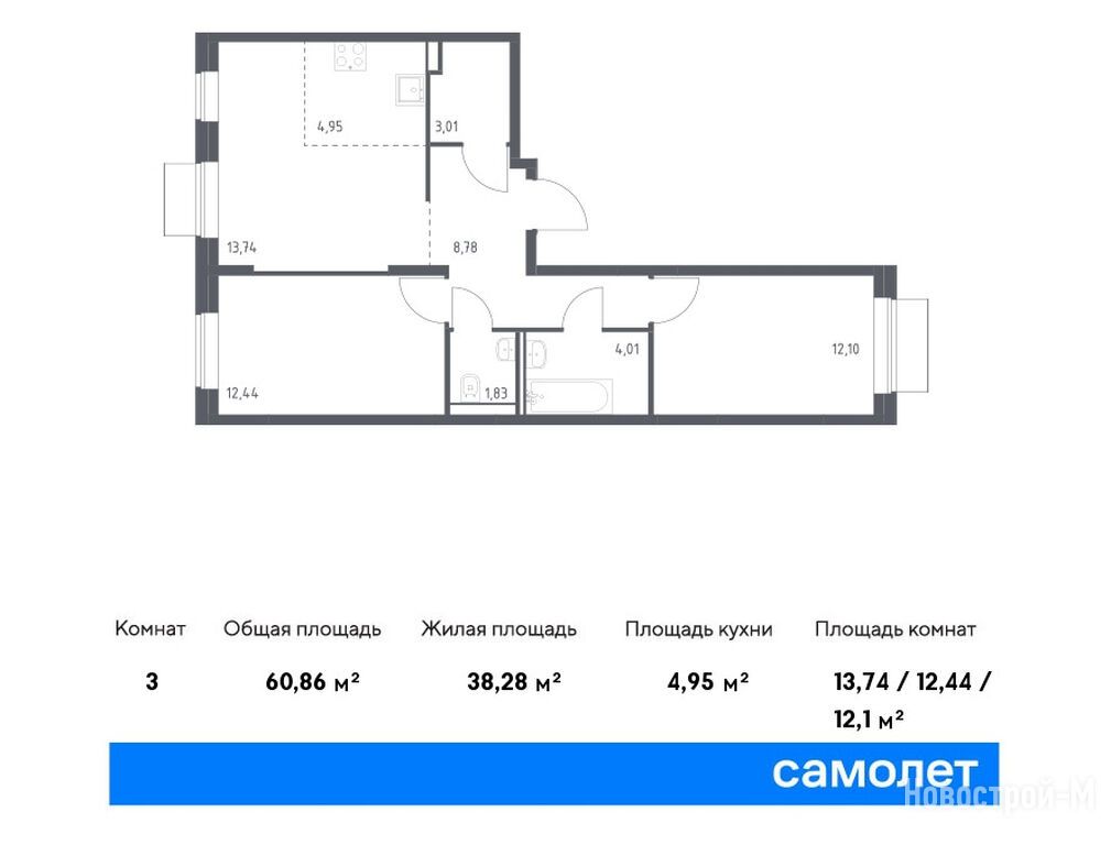 Продается двухкомнатная квартира в новостройке ЖК «Квартал Домашний» по адресу Москва, ЮВАО, Марьино, ул. Донецкая, вл. 30, корп. 2 (3 очередь). Общая площадь квартиры - 60.86 кв. м. Тип проекта, по которому построен дом — Монолит, компания-застройщик — ООО СЗ «Самолет-Донецкая», Группа «Самолет». Стоимость квартиры — 22 705 162 руб. Способы оплаты можно уточнить у продавца. Срок сдачи — 4 квартал 2026. Более подробная информация по телефону.