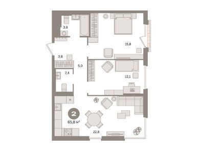 Данная квартира является лидером продаж среди двухкомнатных квартир в ЖК «Квартал Герцена» по данным Росреестра